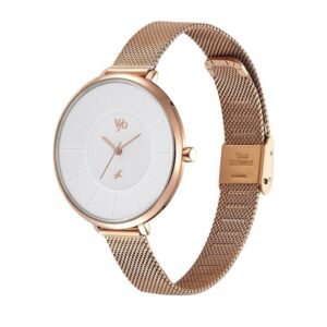 Fastrack Vyb Halo Rose Gold Analog Watch for Women & Girls | White Dial | Stainless Steel Mesh Strap | Quartz Movement | FV60016WM01W