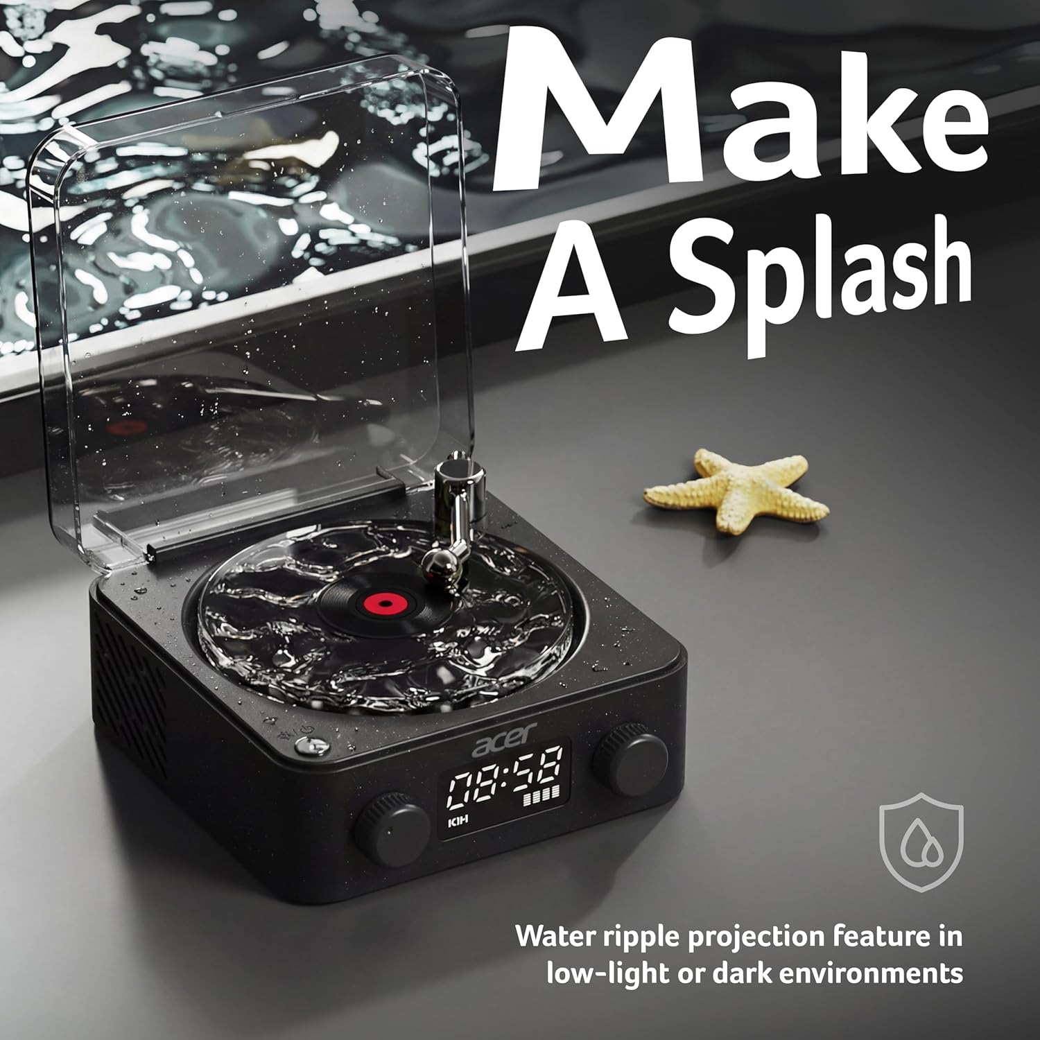 acer DreamWave Bluetooth 5W Speaker with Built-in 1500mAh Battery | TF Card & AUX Support | Water Ripple Night Light, White Noise Sound Machine, RGB Ambient Lamp, Portable Bedside Device